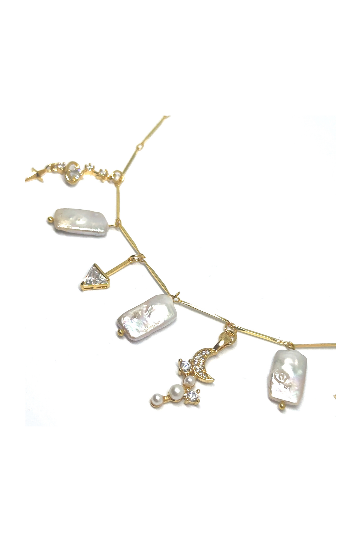 Pirinç üzeri altın kaplama, çelik ve zirkon malzemelerden oluşmaktadır. Parfüm ve diğer kimyasallardan uzak tutulduğu takdirde kararma yapmaz. Boy:45cm+5 cm uzatma zinciri