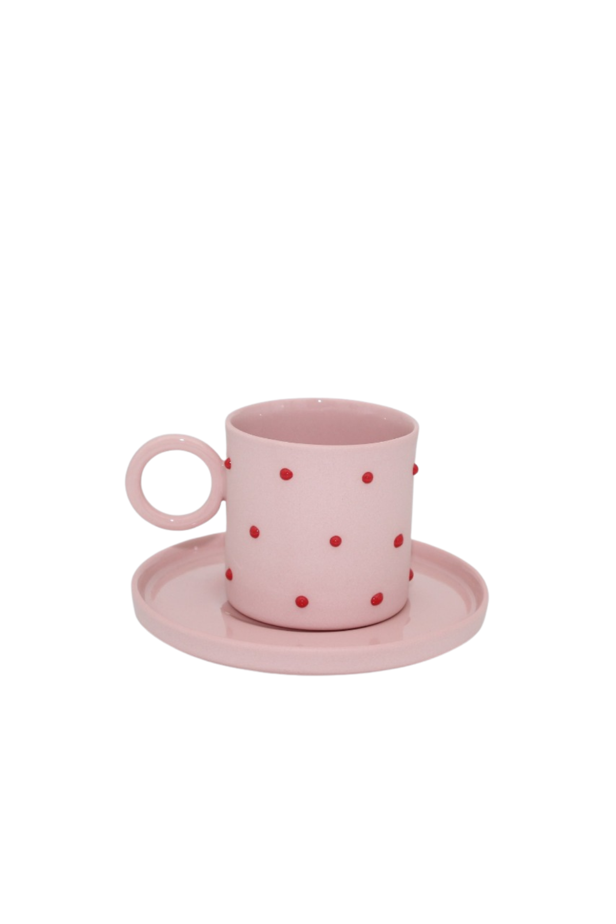 Wonder Clay Kırmızı Pembe Puantiyeli Türk Kahvesi Fincanı