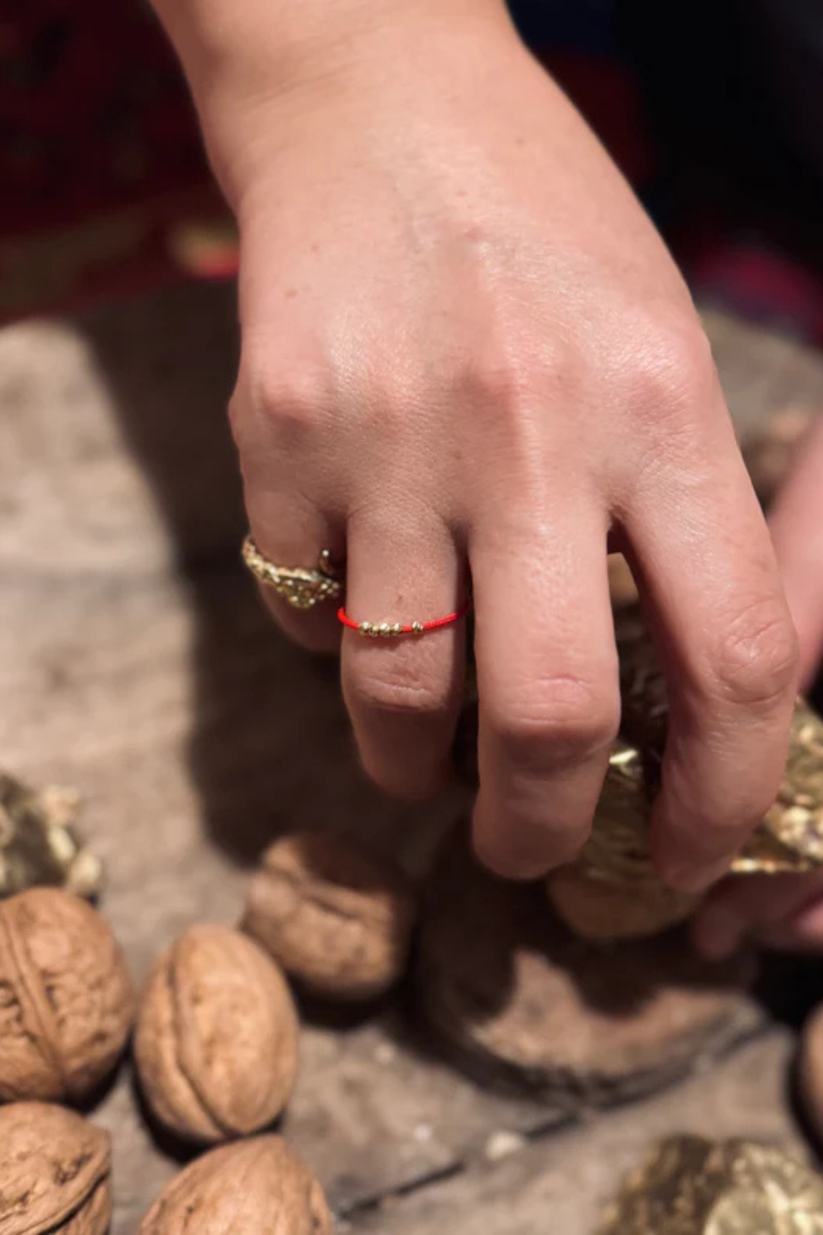 Paraşüt ipi üzerine 14k altın malzeme ile çalışılmıştır. Asansör kilit sistemi ile parmağınıza göre ayarlanabilir.