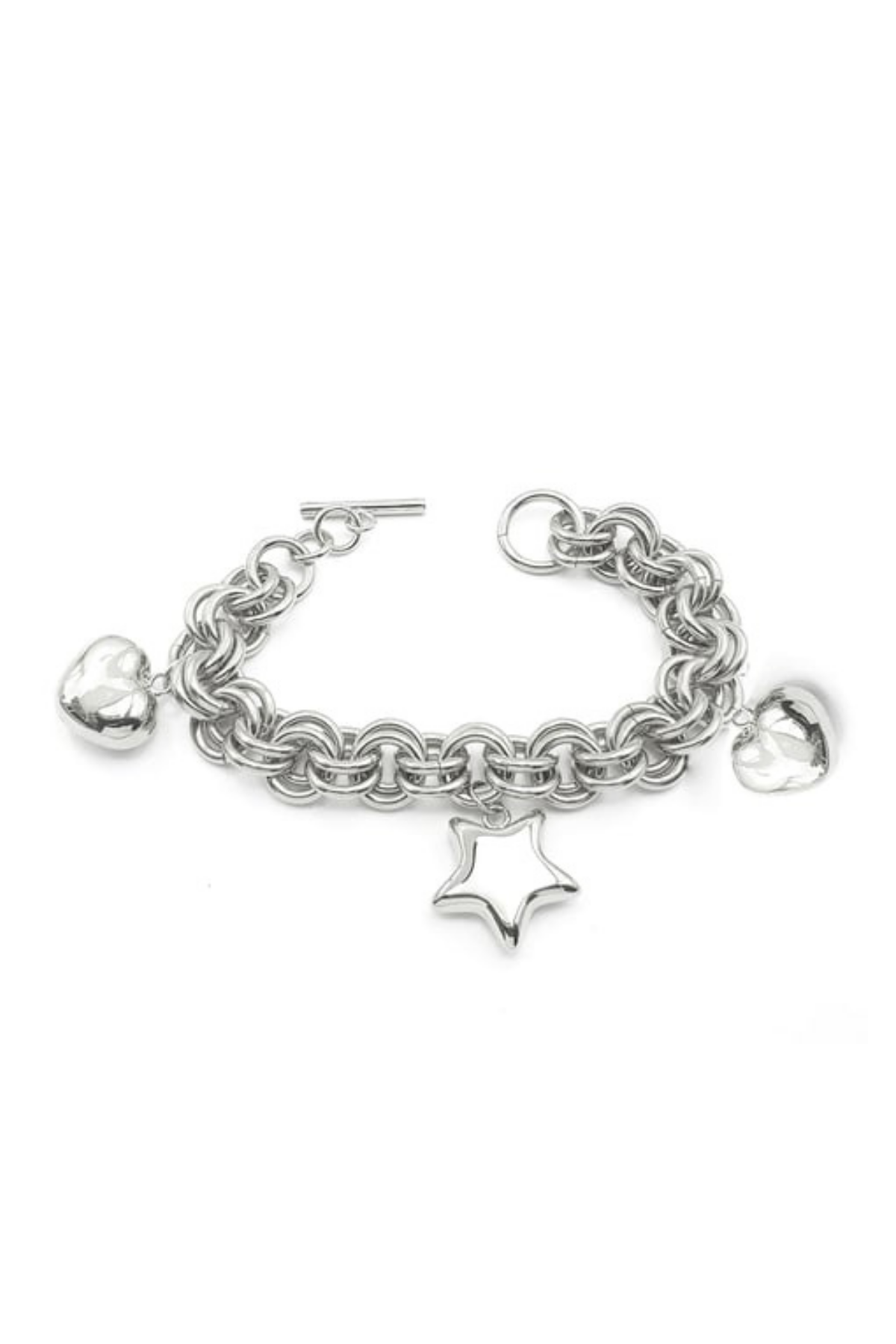 Welch Gümüş Çelik Yıldızlı Kalpli Charm Bileklik